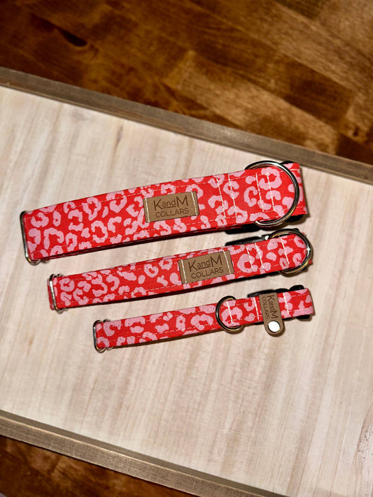 Red and Pink Cheetah Print Valentine's Day Dog Collar